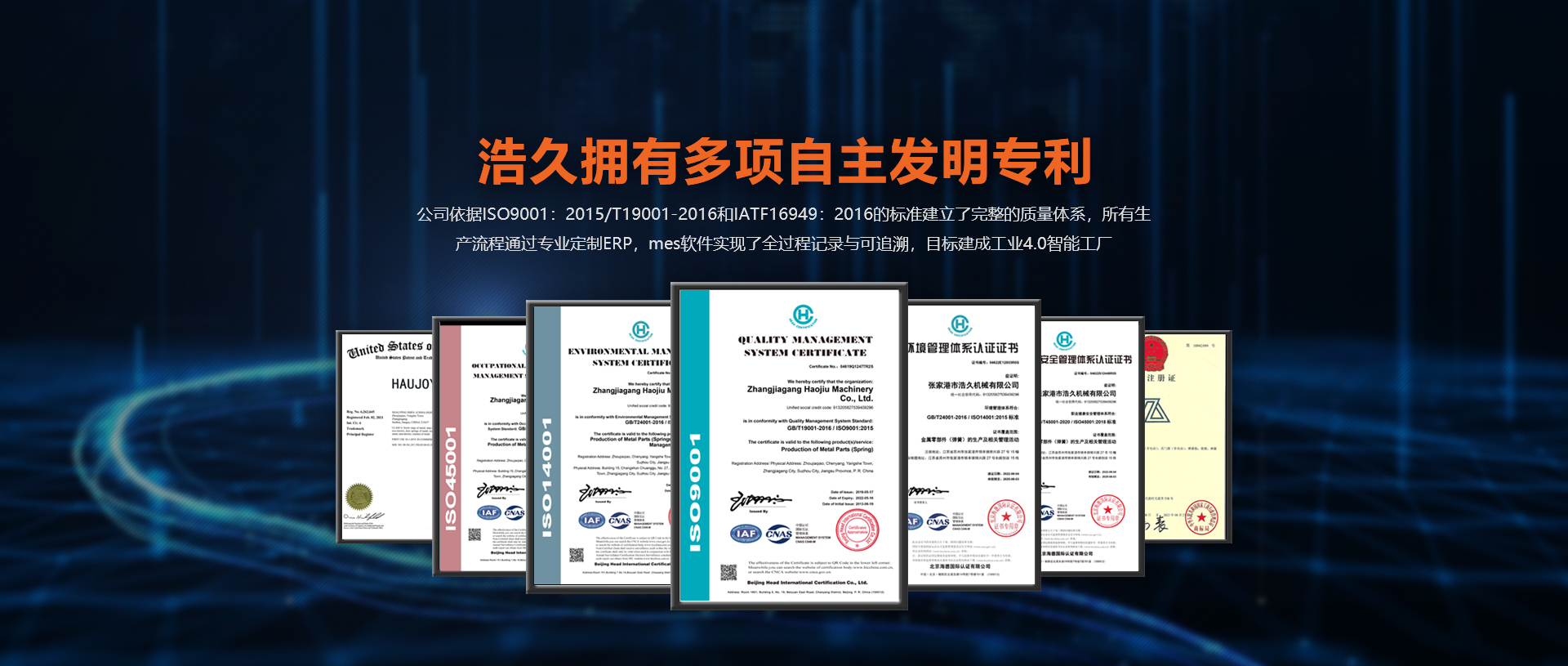 擁有GB/T24001-2016 / ISO14001:2015 標準的環(huán)境認證證書,GB/T45001-2020 / ISO45001:2018 標準的職業(yè)健康安全管理體系認證證書等多項實力認證證書